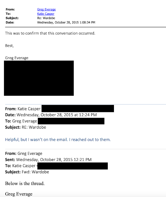 Later, he walked by my desk saying that he found out what happened with the wardrobe. He forwarded me the email with the wardrobe communication and--surprise!--I wasn’t on it. Three weeks prior, Greg and another employee were on the email thread with the production group, not me. And Greg responded to them with what to do. I asked him why he was sending to me if it was already taken care of, and--more importantly--why he didn't redirect them to me in the first place if I was responsible? He said to prove that “the conversation happened” and I should have been included.